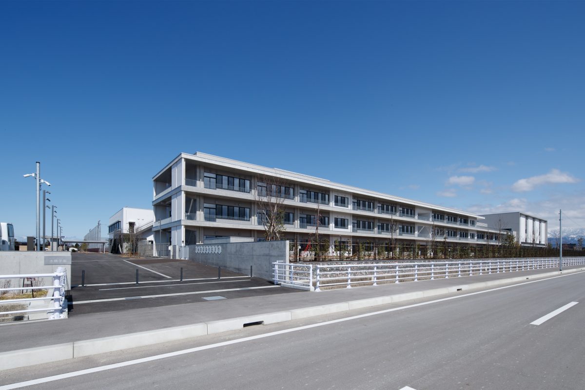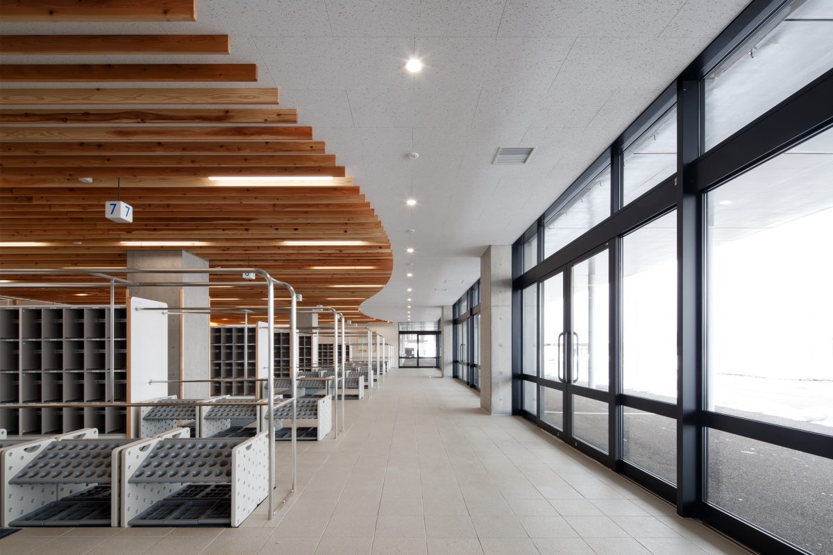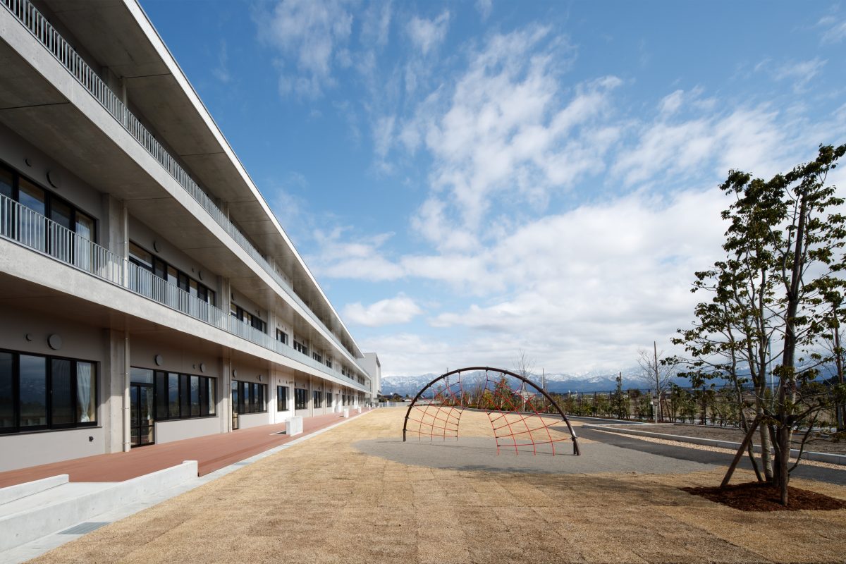 富山市初の義務教育学校として9年間を過ごす学び舎を計画しました。「学校全体を学びの場」とし、子どもたちの可能性を引き出す教育環境を目指しました。本事業は地元企業による「オール富山」のPFI事業として整備され、当社も構成員として参画しています。