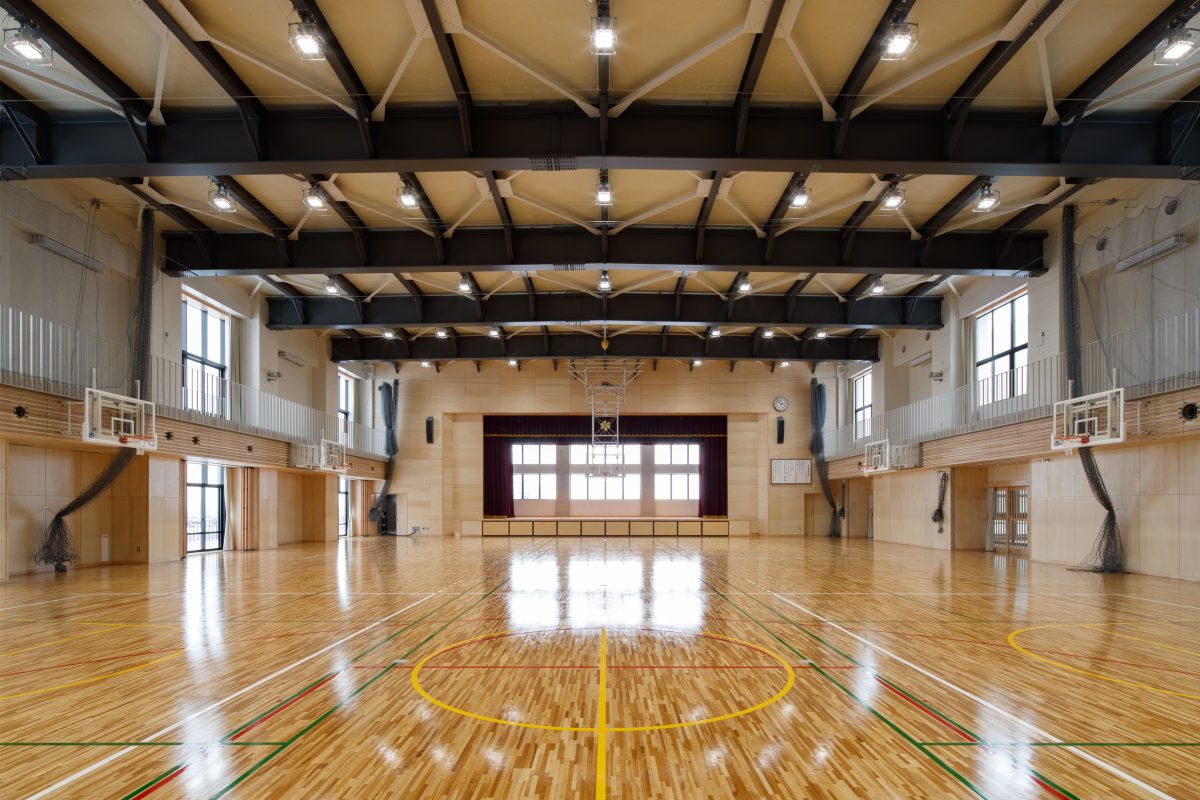 市内の大規模校として初のZEB Ready認証を取得。太陽光発電や蓄電池、ガスバルクを備え、災害時には地域避難所としてエネルギー供給が可能です。